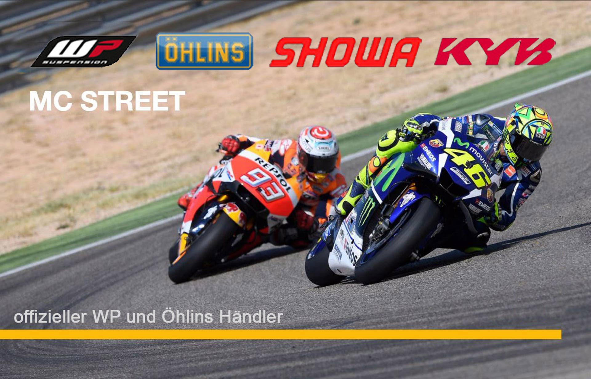 Für Ersatzteilbestellungen der folgenden Hersteller Öhlins, WP, KYB und Showa kontaktieren Sie uns bitte per Telefon (+41) 052 657 43 03 oder per E-Mail: Diese E-Mail-Adresse ist vor Spambots geschützt! Zur Anzeige muss JavaScript eingeschaltet sein!