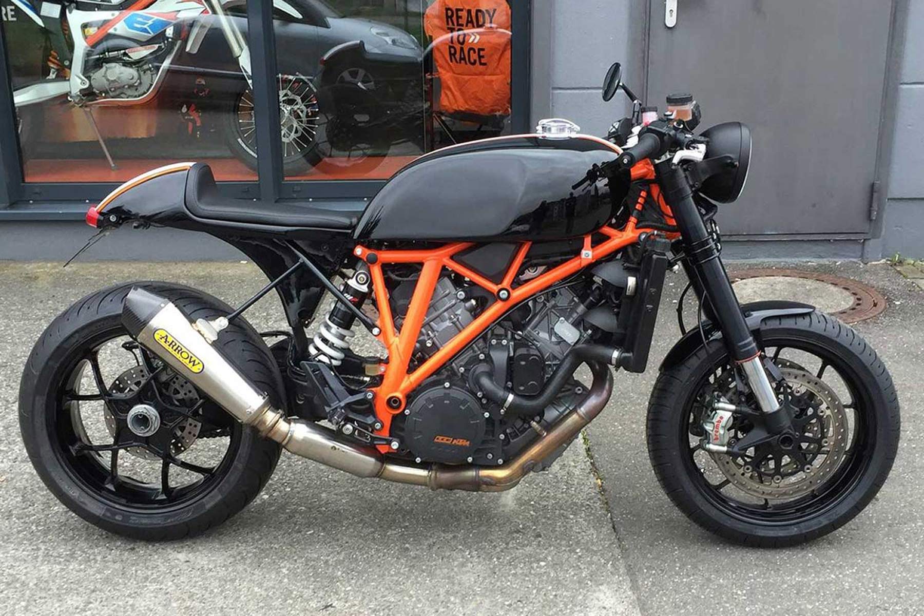 Ein Motorrad im gefälligen Retro-Stil – mit 180 PS, modernem Fahrwerk und ABS-Bremsen – das hat Sigi Zachmann mit der zum Café Racer umgebauten KTM 1290 Super Duke geschaffen.